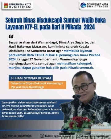 Seluruh Dinas Dukcapil Sumbar Wajib Buka Layanan KTP-el Pada Hari-H Pilkada 2024